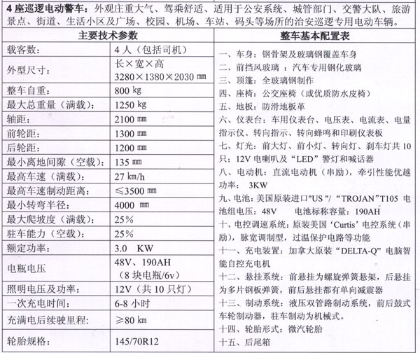 用途:可用于旅游景点、街道、生活小区及广场、校园、机场、车站、码头等场所的日常巡逻用车。